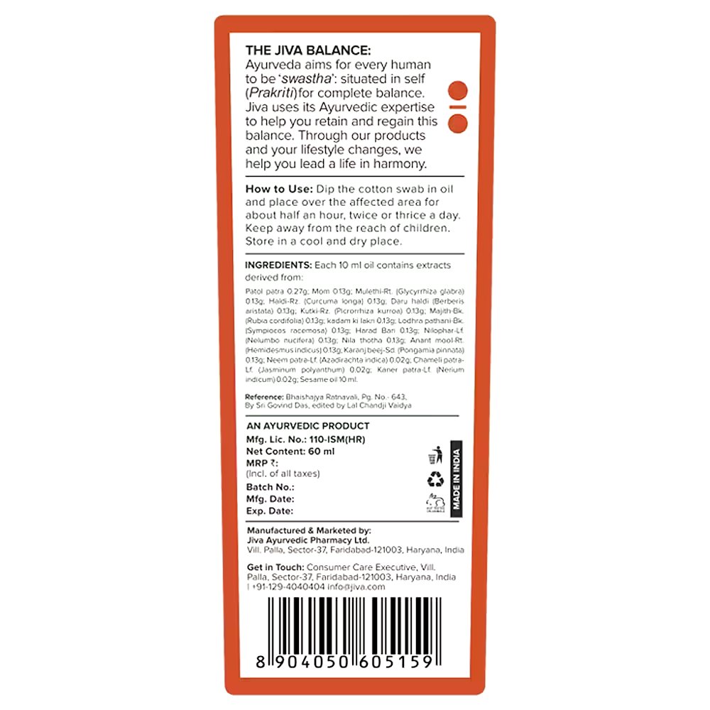Jatyadi oil has an outstanding capacity of healing. Application of this oil heals most types of wounds and injuries and also arrests bleeding from them. All ingredients of this oil aid in purifying the blood, disinfecting the wounds and initiating healing process in the tissues. Wounds caused by insect bites also respond well to this oil. Similarly, anal fistula and bleeding piles can be successfully treated by Jatyadi oil. Cotton ball soaked in this oil is kept in vagina to arrest excessive uterine bleeding. Jatyadi oil is also used for external application in herpes zoster infection and fire burns. Wounds in the