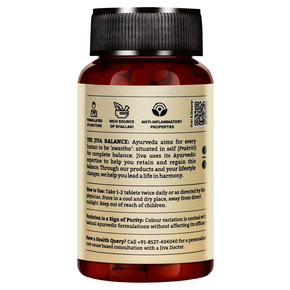 Jiva Pain Calm Tablet is a natural pain-relieving solution fortified with the goodness of potent Ayurvedic herbs like Shallaki, Haldi, Ashwagandha, Shunthi, Tagar, and Guduchi for instant and long-term pain relief. It is ideal for providing relief in pain and associated discomforts caused by arthritis, gout, spondylitis, sciatica, headache, migraine, fatigue, stiffness, spasm, etc. It contains herbs that are a rich source of calcium and are known for their vata-pacifying properties that lead to joint troubles. Besides providing pain relief, it also helps in strengthening and rejuvenating the muscles and bones from within and relaxes the nervous system.